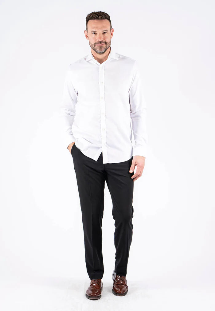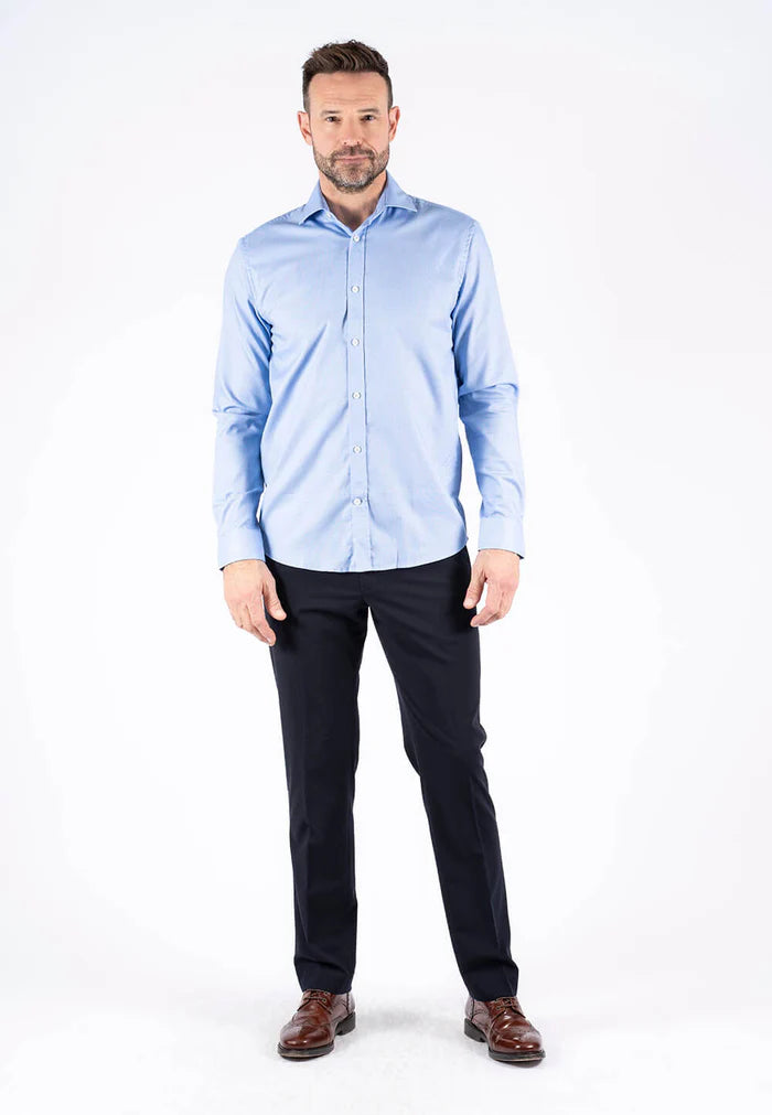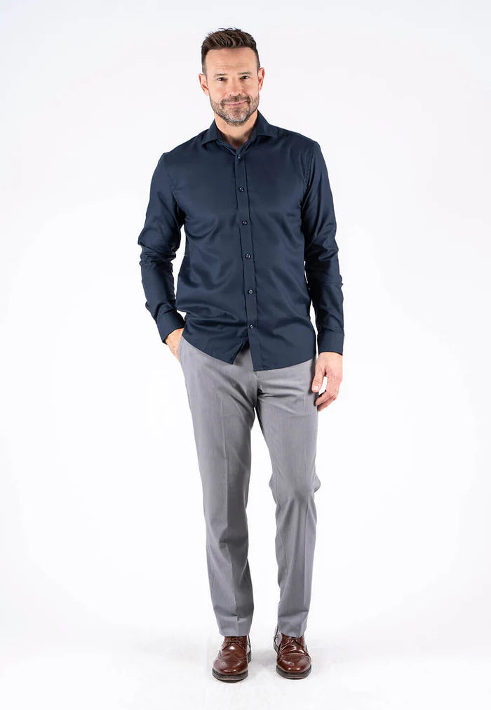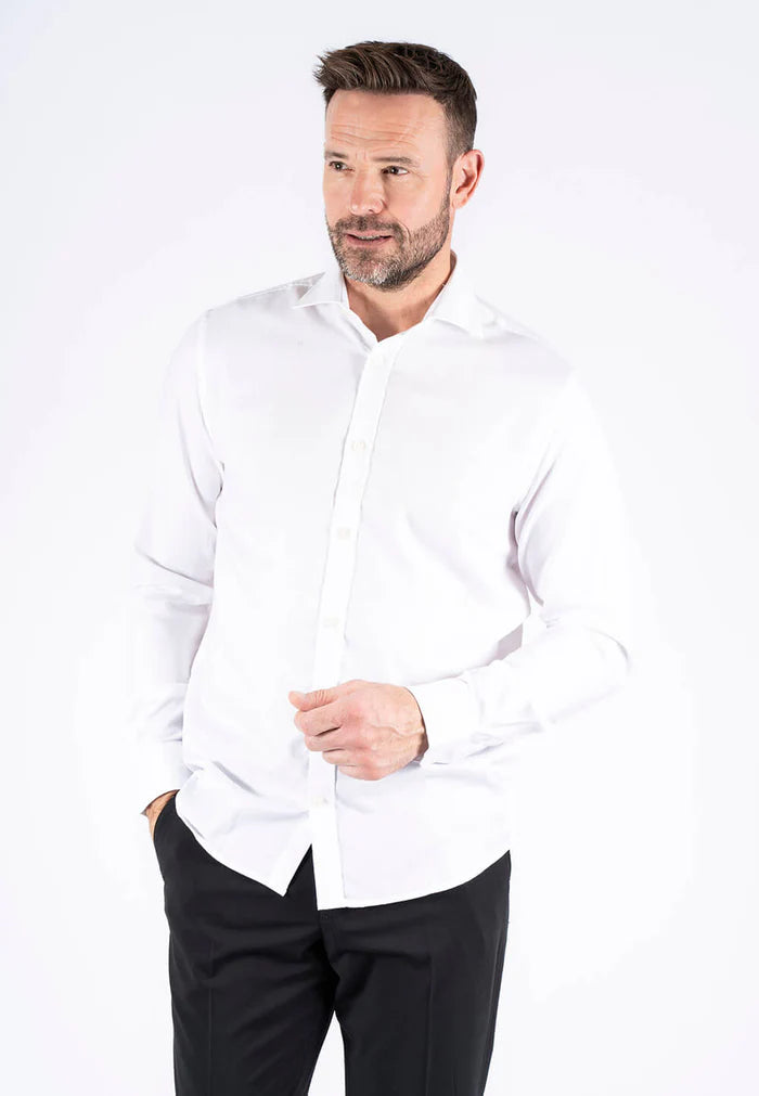 Denne alsidige skjorte med cut-away krave og klassiske hvide knapper, er fremstillet af en behagelig bomuldskvalitet med 2-tonet effekt, og den er strygefri, så skjorten ikke krøller. Skjorten kan nemt sættes sammen med både formelle og mere casual outfits.