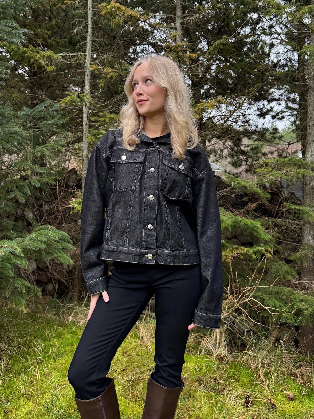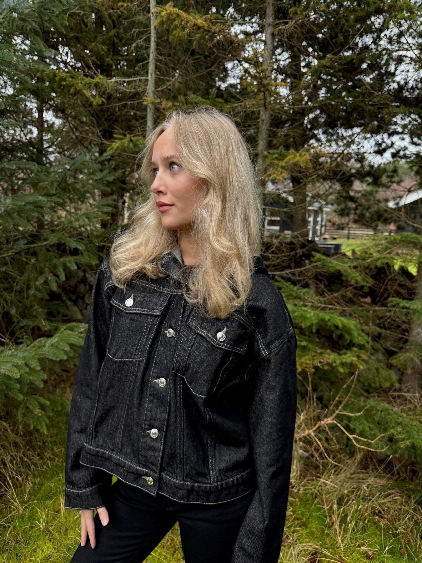 Detaljer som knapper, brystlommer og synlige syninger understreger det tidløse design og giver jakken et cool, moderne udtryk.