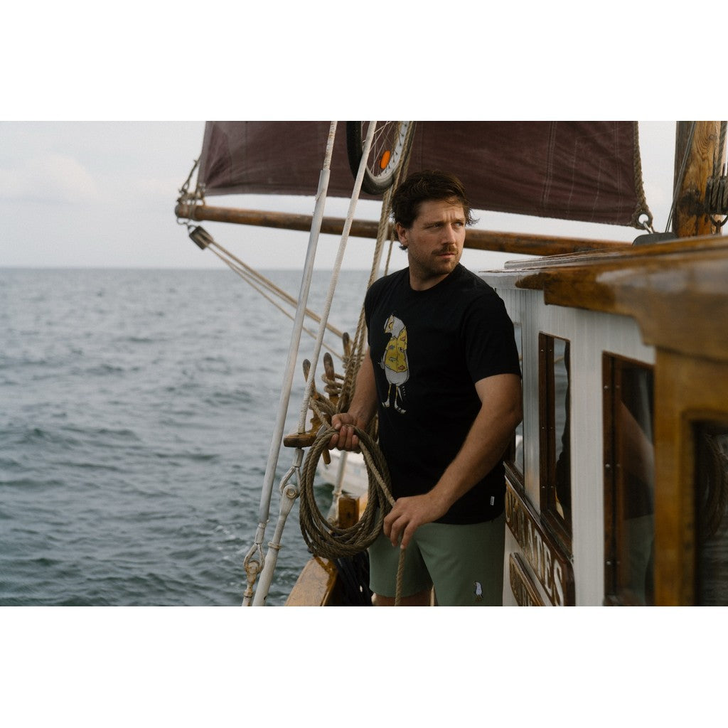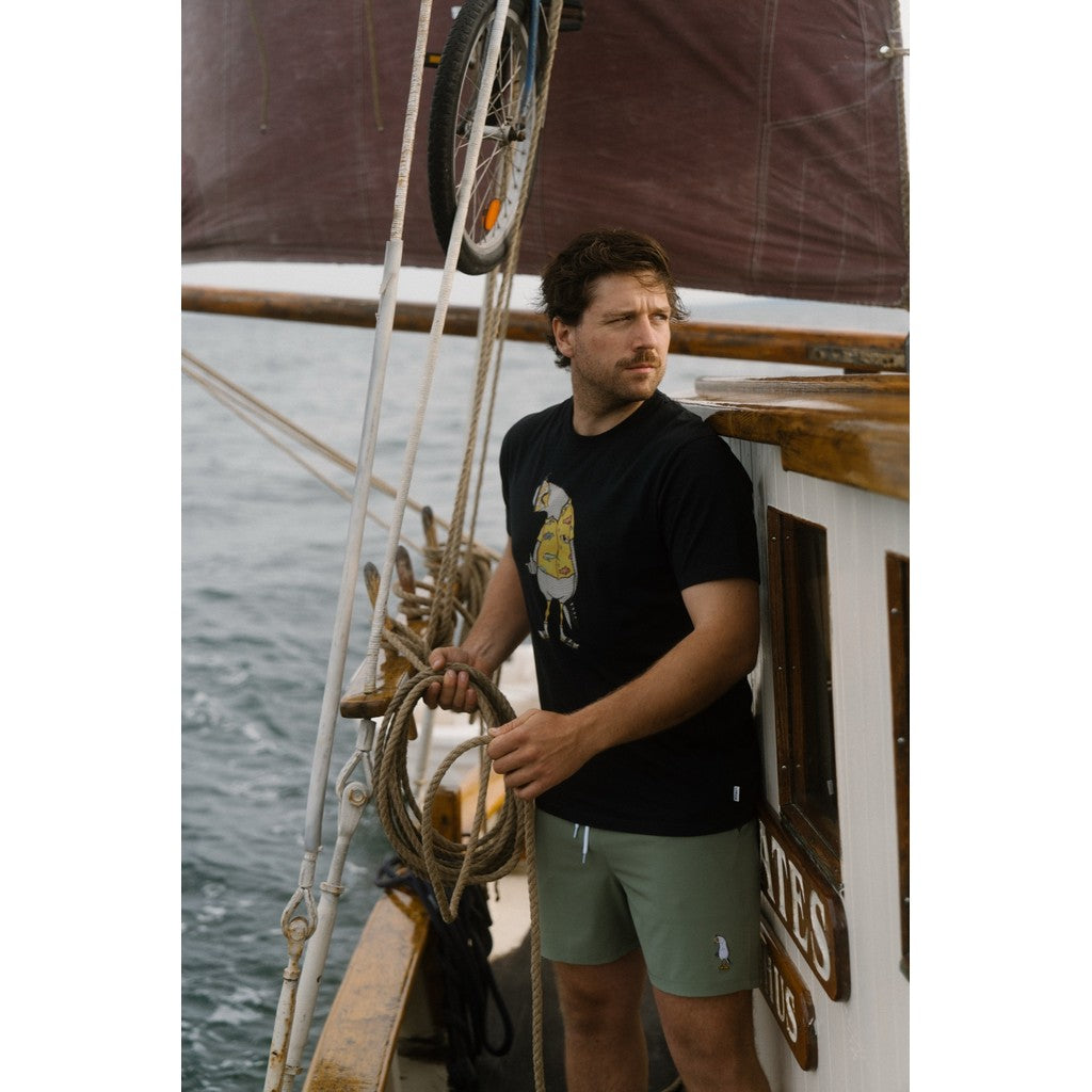 “‘Flipping the bird’ er et amerikansk udtryk for at give nogen fingeren. Det er et pudsigt udtryk, og ingen ved helt, hvor det stammer fra. Om det er inspireret af mågers til tider tvivlsomme attitude, kan diskuteres – men mågen på dette design har i hvert fald taget udtrykket helt til sig.