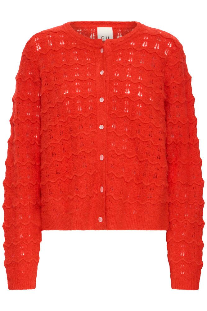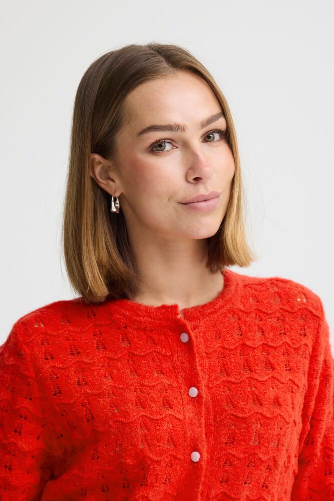 Feminin og blød strikcardigan med et flot, struktureret udtryk. Cardiganen har lange ærmer, rund hals og knaplukning foran, hvilket gør den nem at style både til hverdag og pænere brug. Den løse pasform giver et afslappet og behageligt look, mens materialeblandingen gør den varm og komfortabel.