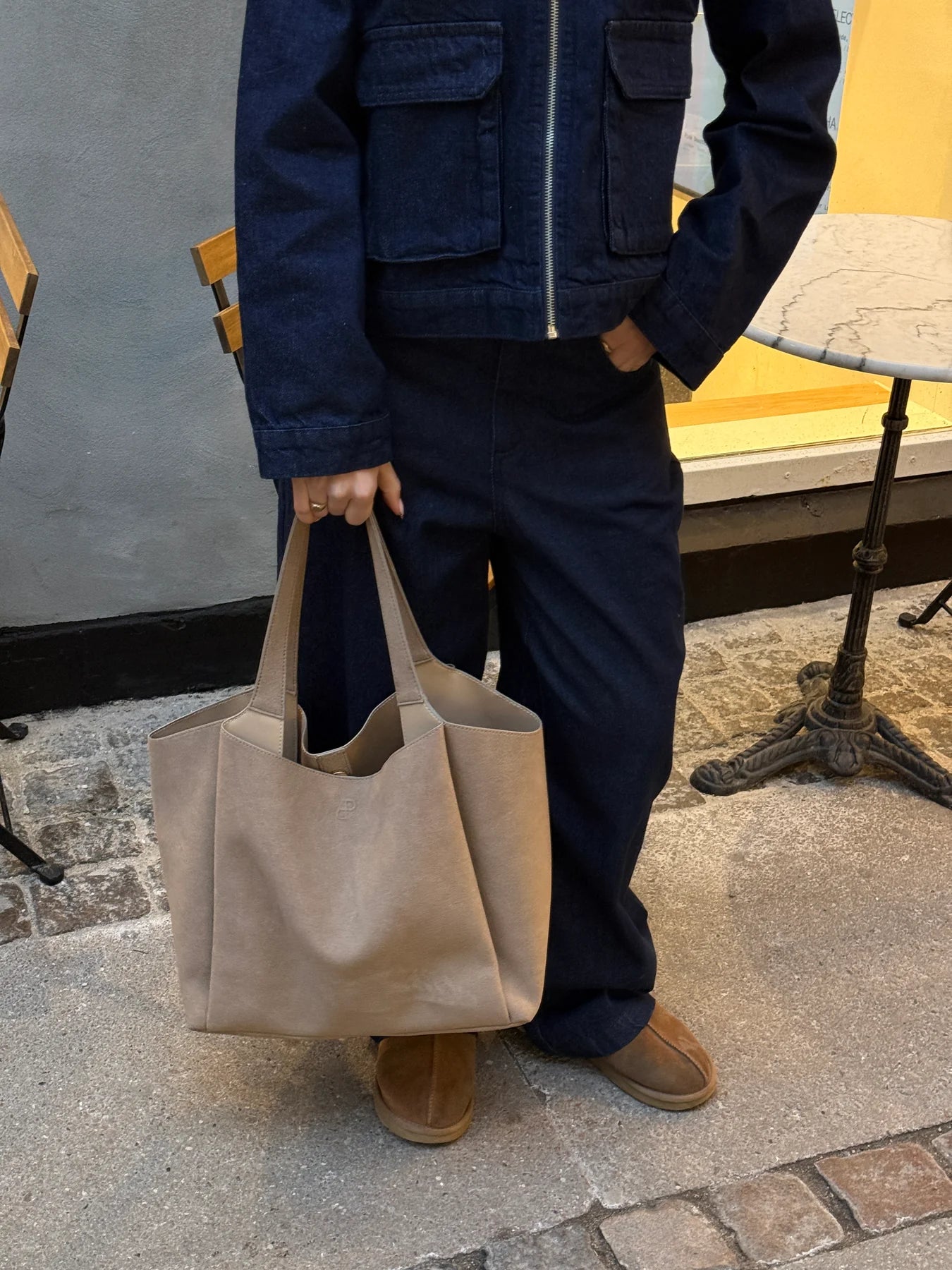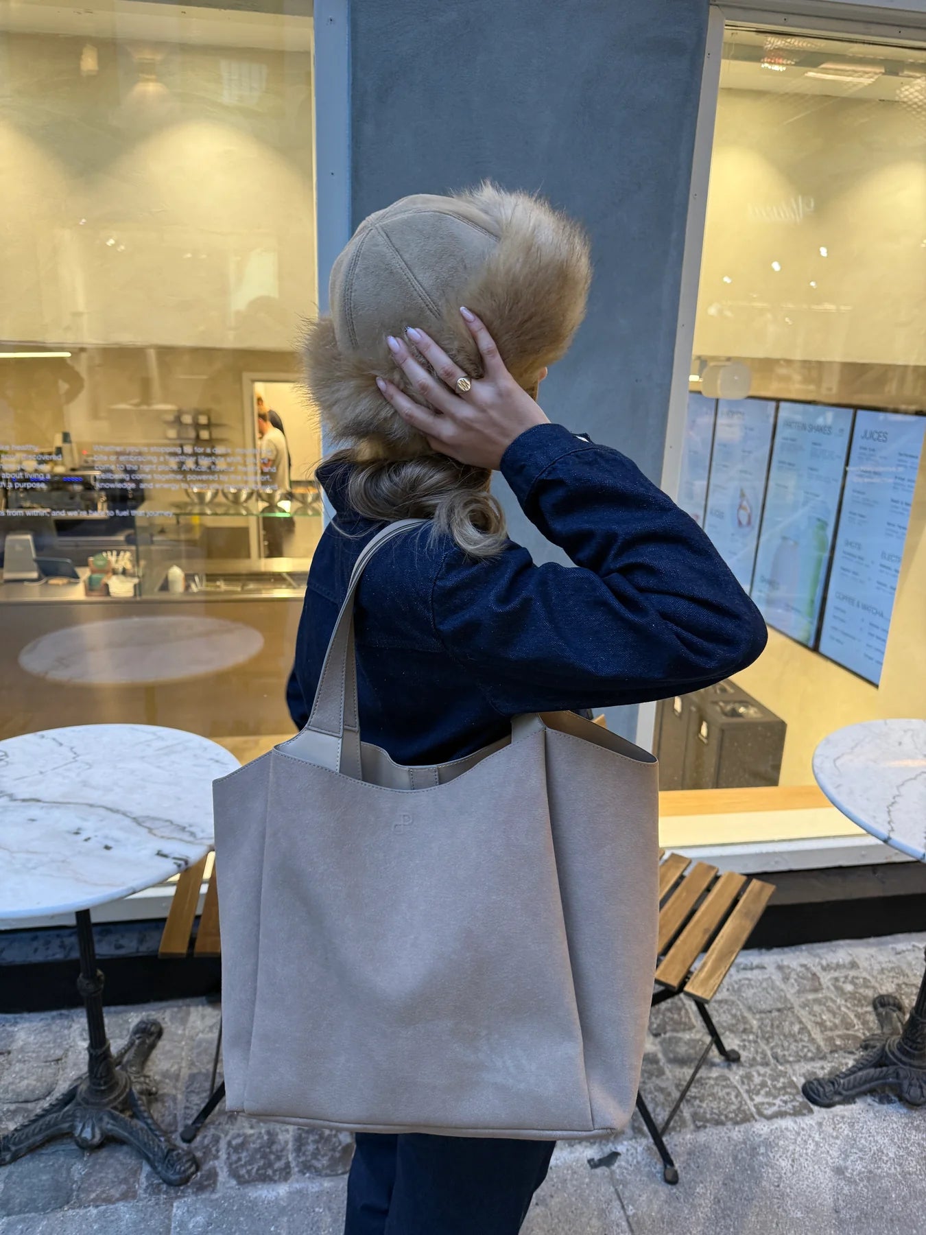 Sophia Bag Medium er en blød og rummelig tote, der kombinerer et minimalistisk design med et elegant faux suede-look. De brede stropper gør den behagelig at bære, og størrelsen er perfekt til både hverdagens essentials og små ekstra ting. En alsidig og stilren taske, der nemt løfter dit outfit.