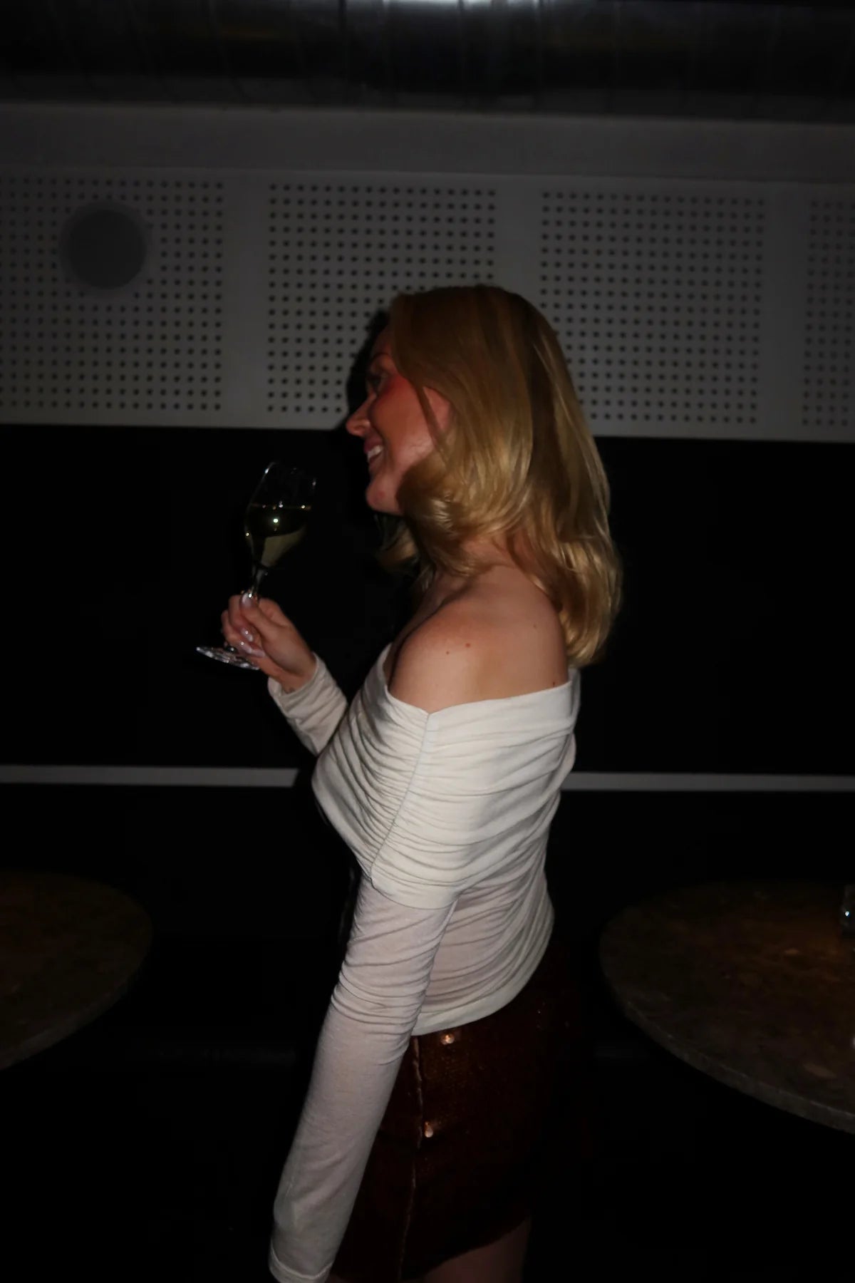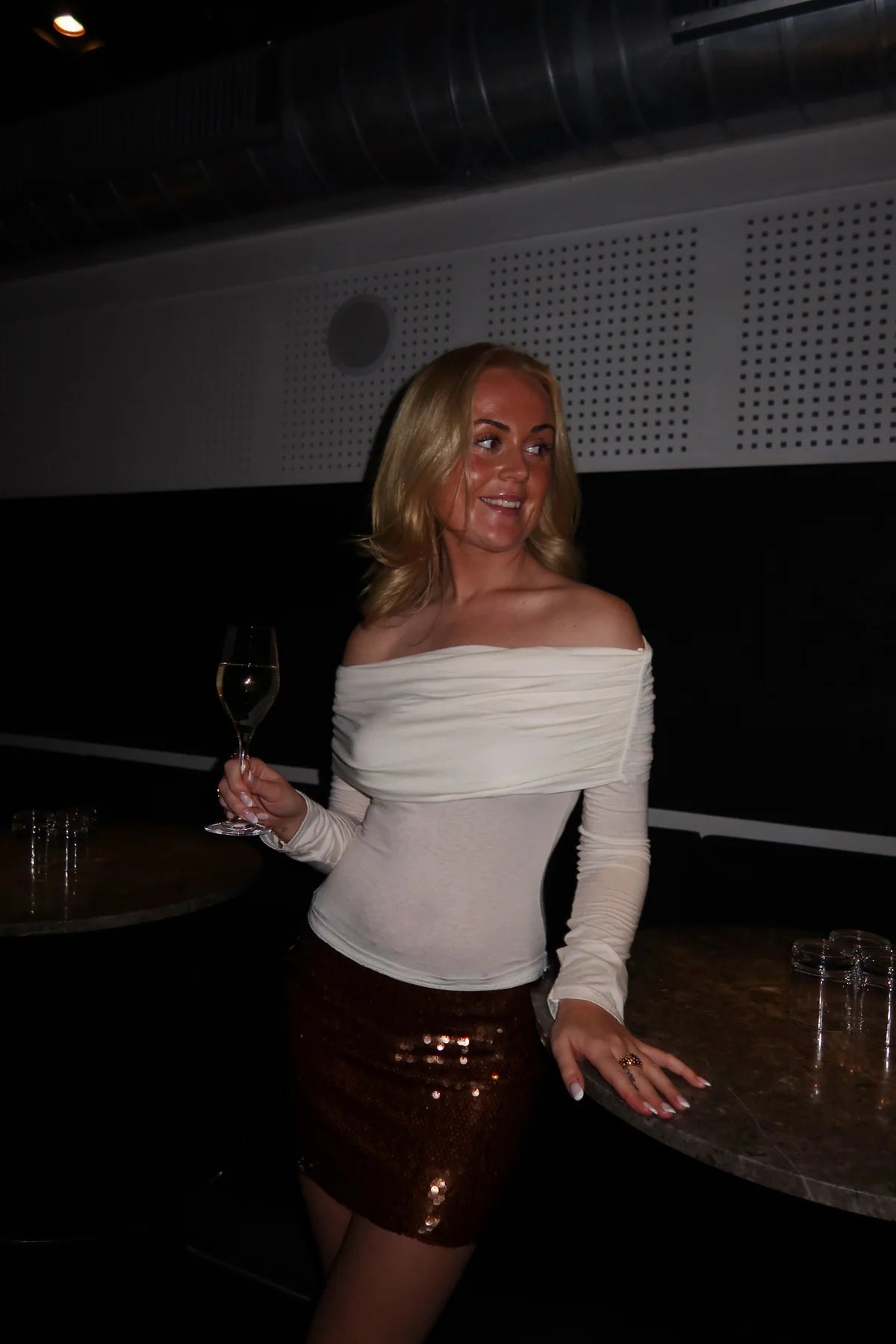 Elegant og tidløs off shoulder top i en smuk chokoladebrun nuance. Toppen er fremstillet i en blød og strækbar kvalitet. Det foldede stof over skuldrene skaber et sofistikeret udtryk, mens den tætsiddende pasform gør den perfekt både til hverdag og festlige anledninger
