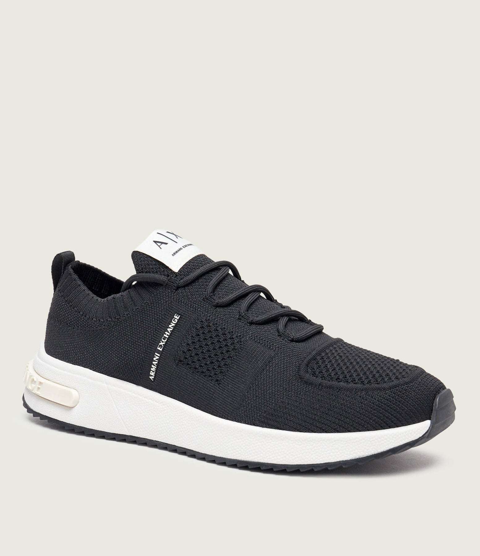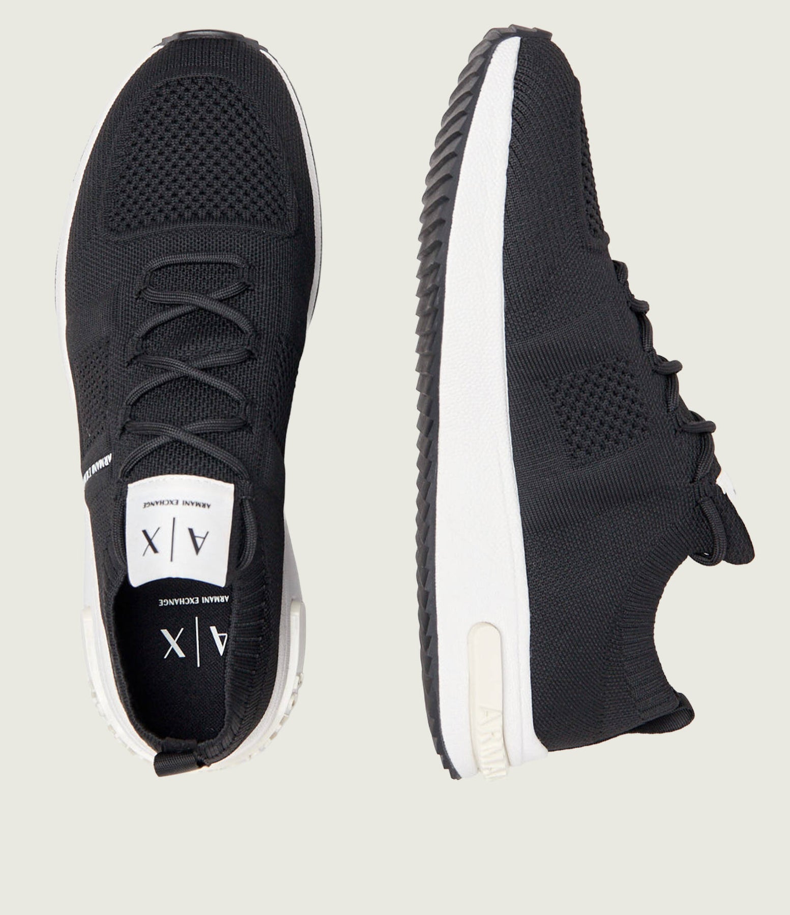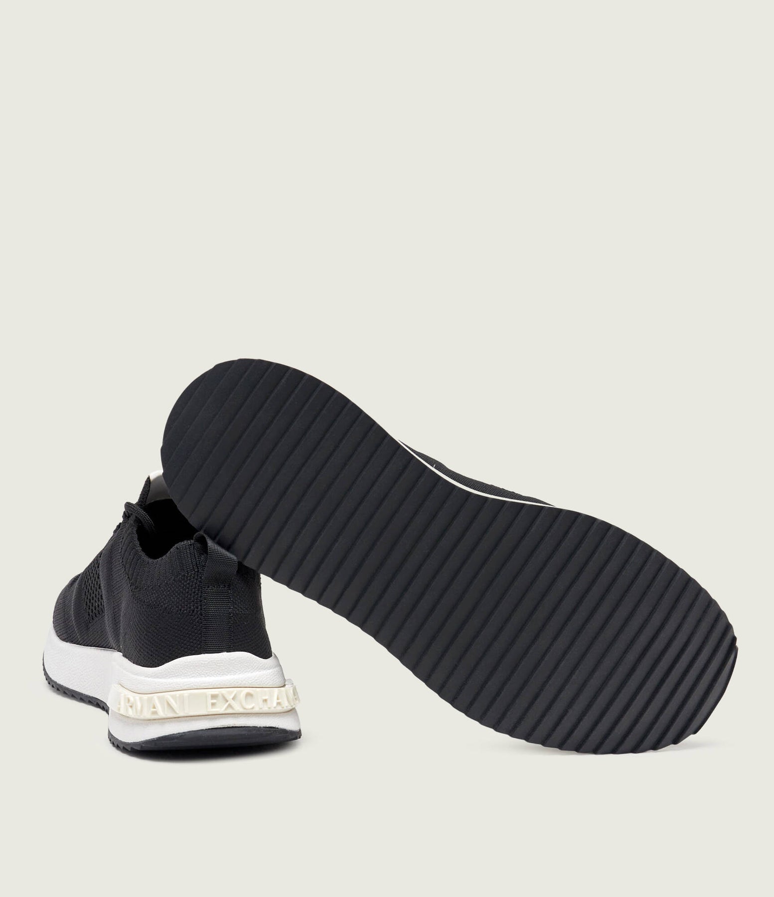 Moderne sneakers med let, teknisk strikket overdel i 100% polyester, der giver optimal åndbarhed og komfort. Det rene, minimalistiske design fremhæves af Armani Exchange‑logoet på siden og en gummisål med kontrastdetaljer, som sikrer godt greb og stabilitet. En praktisk trækflap på hælen gør dem nemme at få på, mens den ergonomiske konstruktion giver komfort hele dagen.