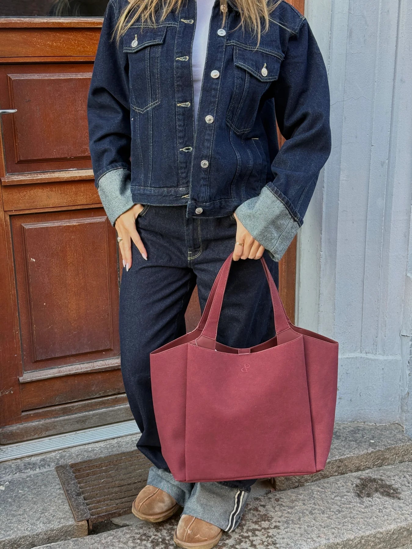 Sophia Bag Medium er en blød og rummelig tote, der kombinerer et minimalistisk design med et elegant faux suede-look. De brede stropper gør den behagelig at bære, og størrelsen er perfekt til både hverdagens essentials og små ekstra ting. En alsidig og stilren taske, der nemt løfter dit outfit.