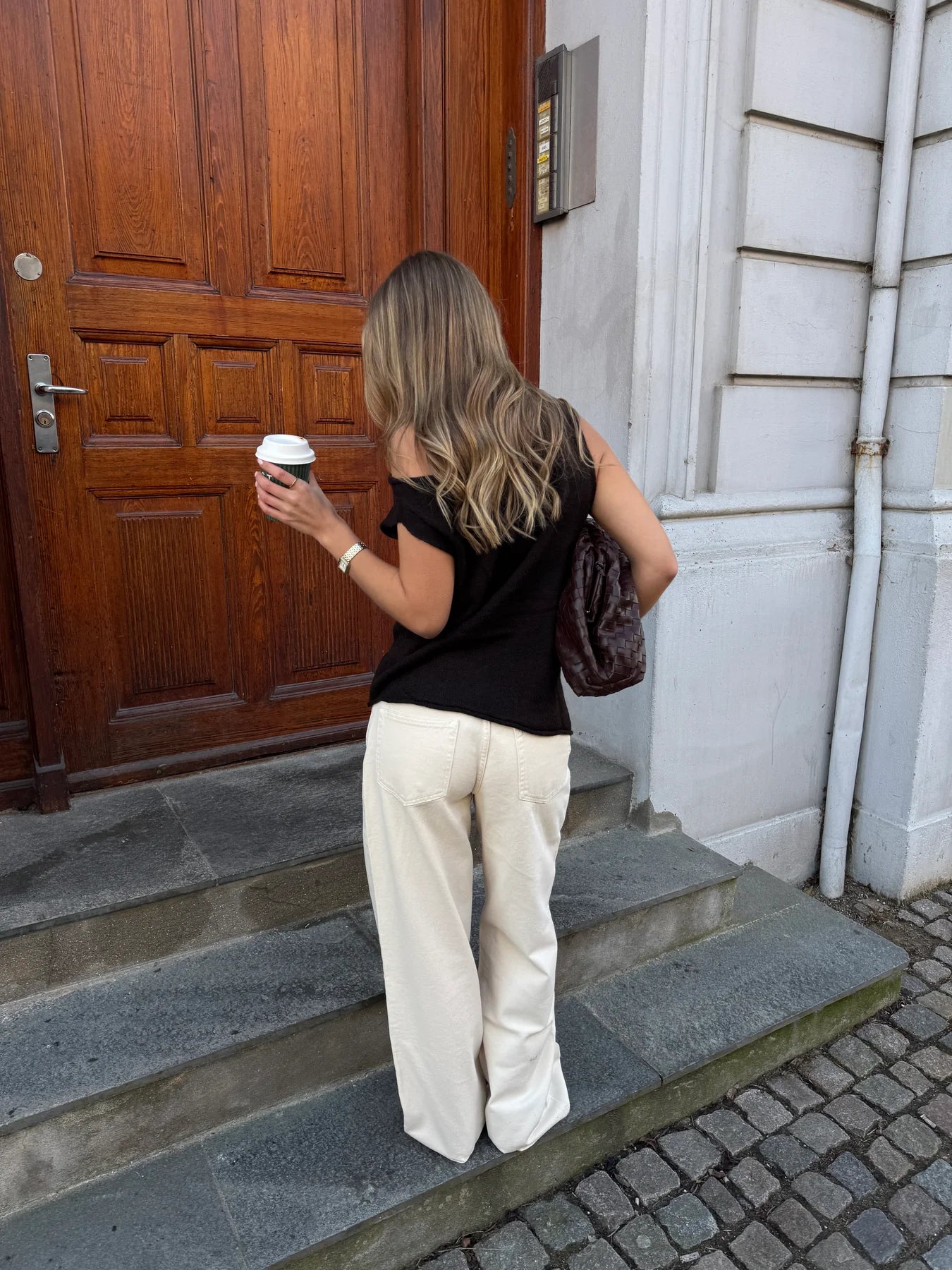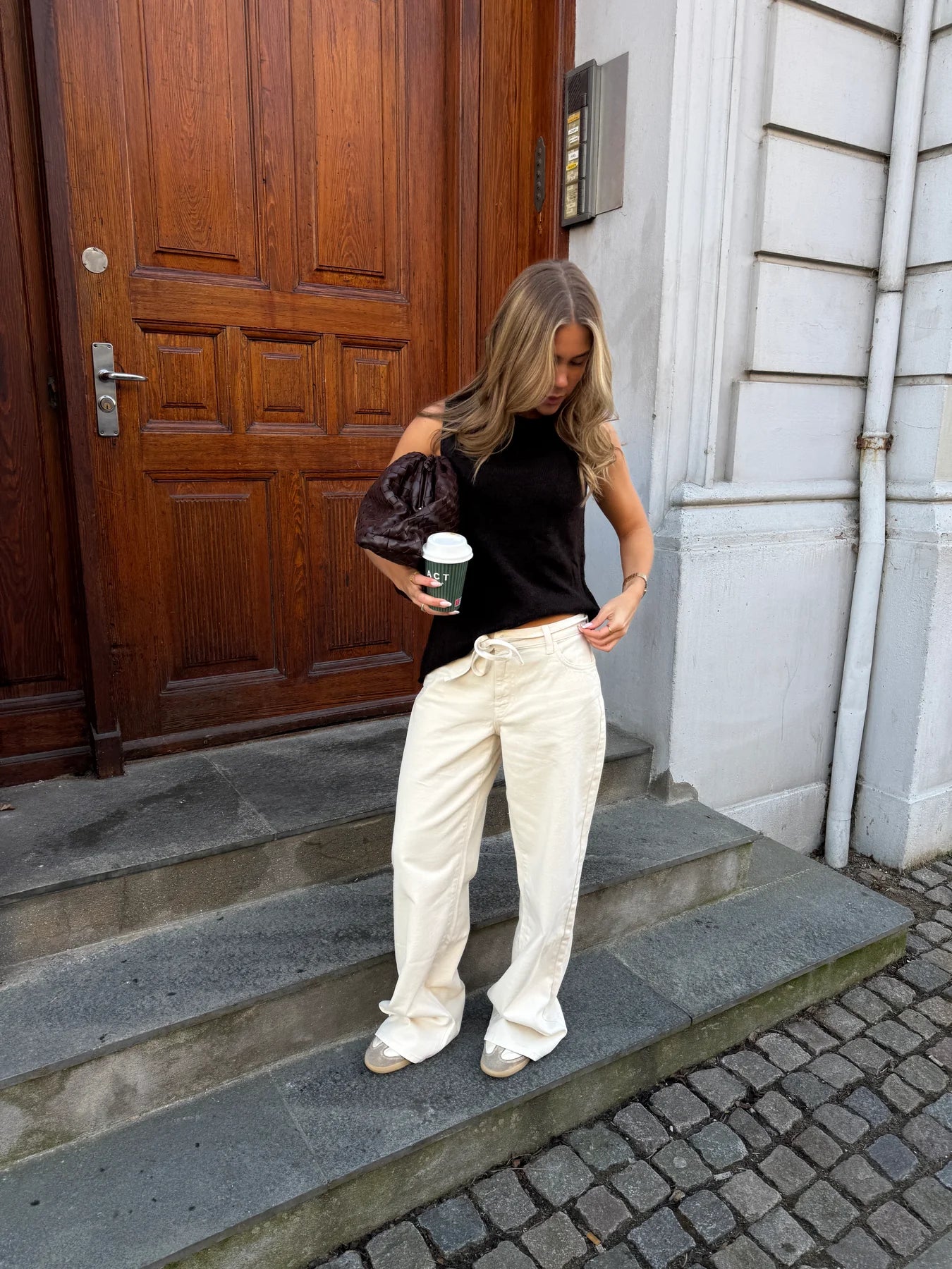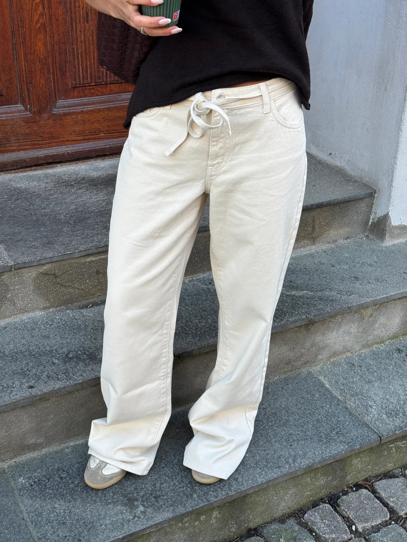 Disse bukser rammer den perfekte balance mellem afslappet komfort og stilrent design. De har et løst fit med brede ben og en justerbar snøre i taljen, der giver et afslappet udtryk og tilføjer en cool, casual detalje. Perfekte til både hverdag og weekend.