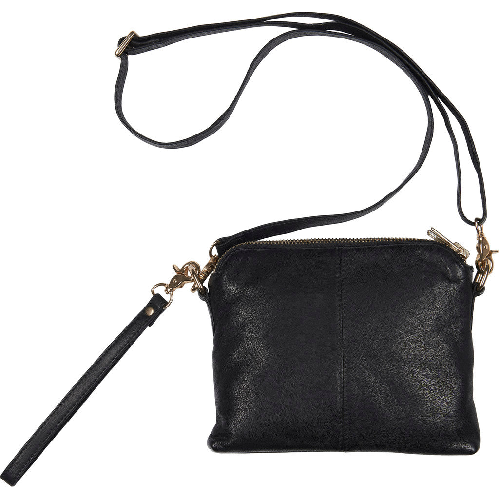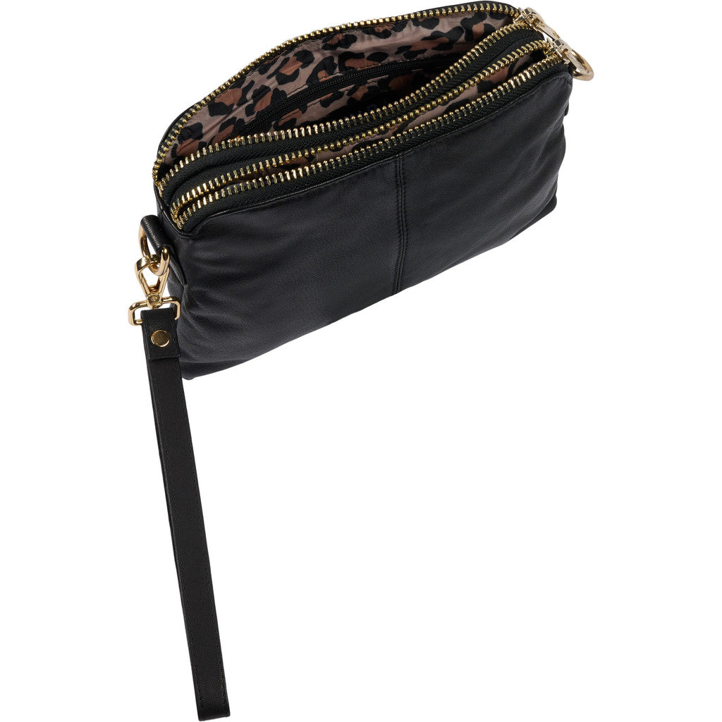 Crossbody clutch i læder med 2 rum med lynlåslukning foroven. Tasken har en justerbar og aftagelig skulderrem samt en håndledsrem, som også kan tages af. Indvendig har tasken et rum med lynlås samt en fastsyet kortholder i den ene side. Foret.